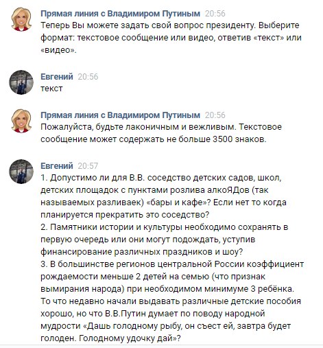 Вопросы гражданина президенту