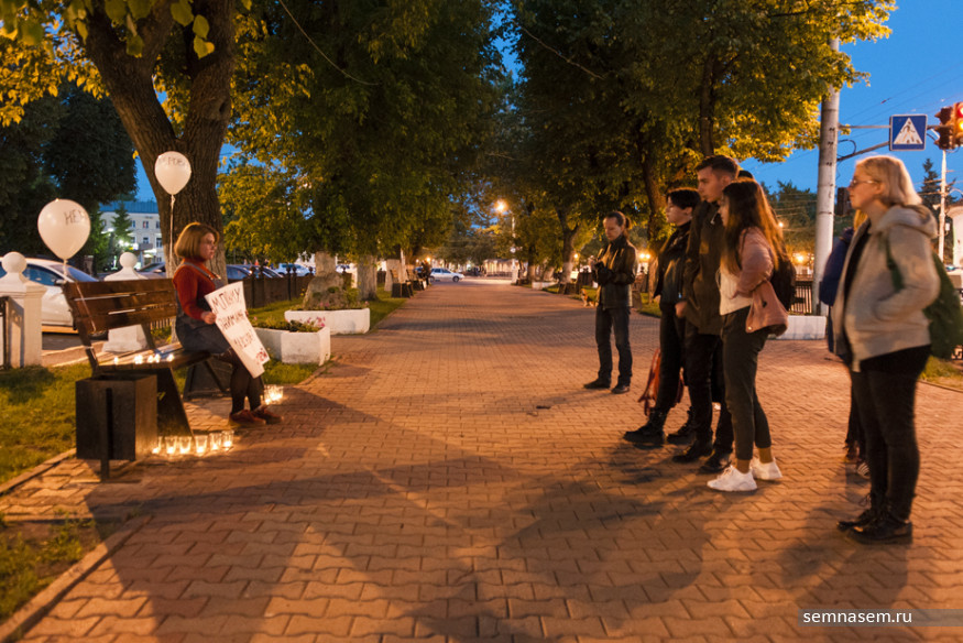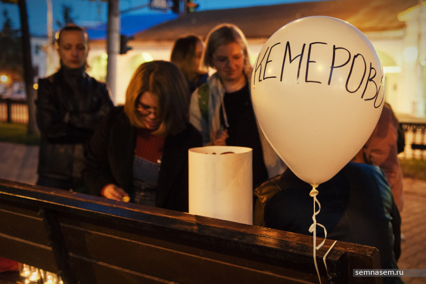 Вечером участники акции собрались в Ботниковском сквере напротив костромской мэрии. Возле одной из лавочек они зажгли свечи в память о детях, погибших на пожаре в кемеровском торговом центре «Зимняя вишня» 25 марта 2018 года.