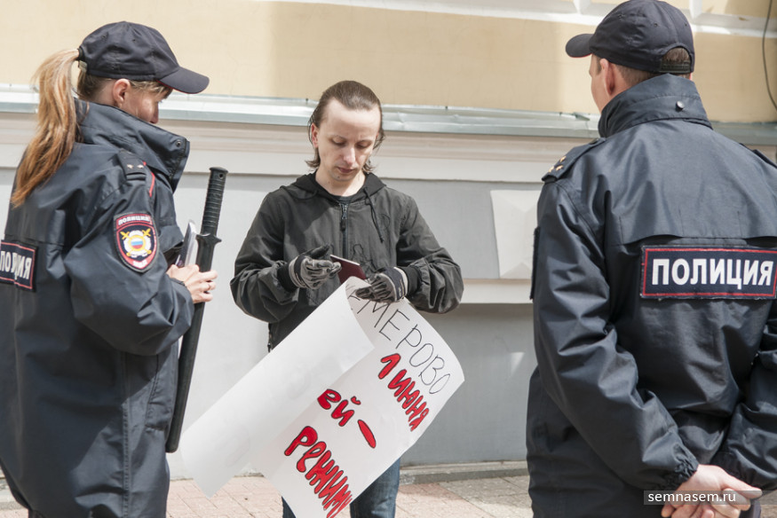 В акции приняли участие несколько человек, которые вышли с одиночными пикетами в разных частях города. К некоторым из них подходили полицейские и просили предъявить паспорт.