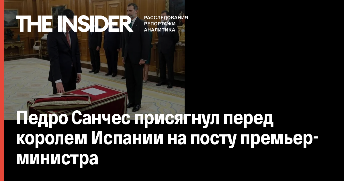 Испанский король Фелипе VI принял присягу социалиста Педро Санчеса на посту нового главы правительства страны, сообщает «Интерфакс» со ссылкой на испанское телевидение.