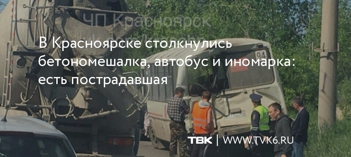 В Красноярске столкнулись бетономешалка, автобус и иномарка: есть пострадавшая