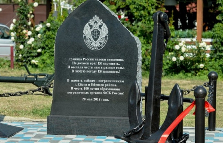 Памятный знак в честь 100-летия пограничной службы 25 мая, накануне Дня пограничника, торжественно открыли на Ейском шоссе около памятного знака кораблю «Ейский патриот».