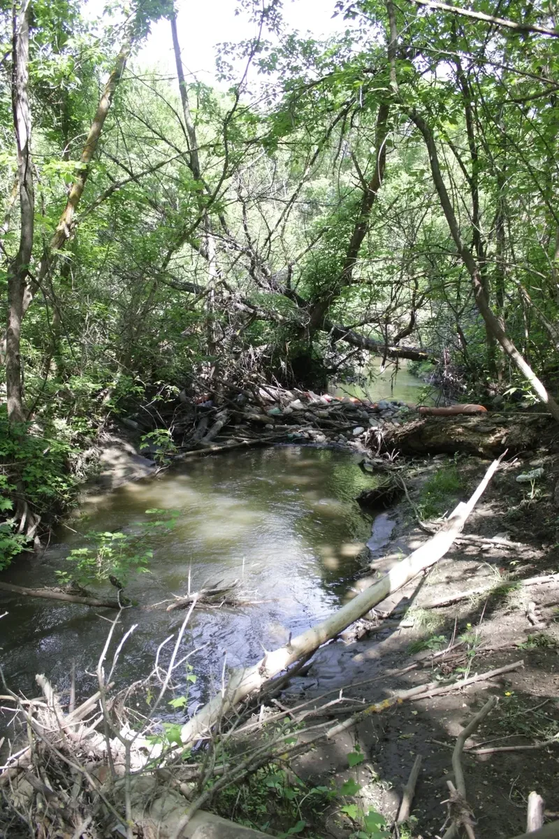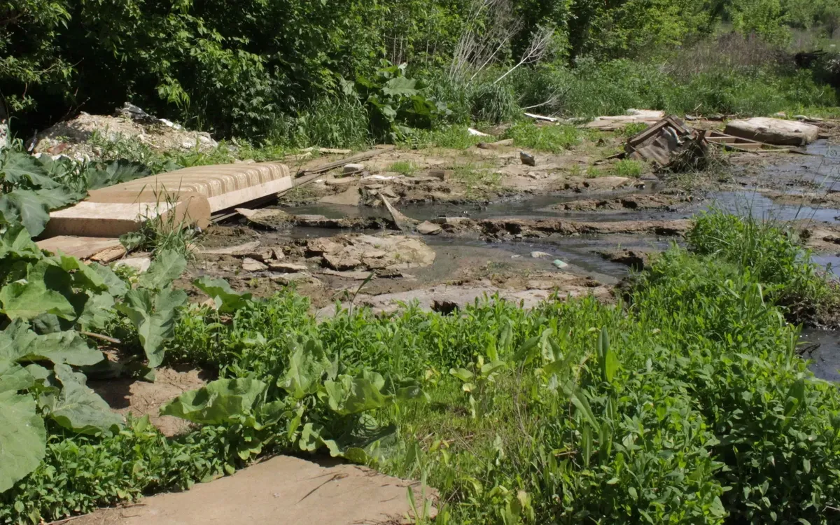 Черная «речка» течет по особо охраняемой природной территории почти три километра. Раньше в овраге били родники, из которых дачники брали воду для питья и полива. «Свежесть была — не надышишься. Здесь клен татарский растет, он пахнет, почти как липа. Теперь люди перед тем, как на дачу ехать, проверяют, откуда ветер дует. Если со стороны сброса — лучше не приезжать, здесь невозможно находиться». Деревья на берегу канализационного потока покрыты зеленоватой плесенью. Ниже по течению лежит куча гнилых стволов, перед ними разливается целое болото нечистот.
