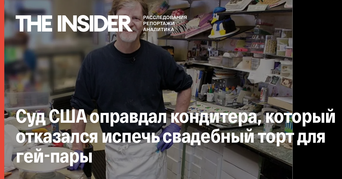 Верховный суд США не нашел ничего противозаконного в действиях кондитера из Колорадо Джека Филлипса, который отказался принять заказ на свадебный торт от однополой пары из-за своих религиозных взглядов, передает Associated Press.