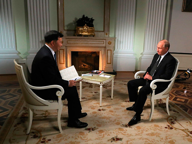 Путин дал интервью генеральному директору Медиакорпорации Китая Шэнь Хайсюну 31 мая - в канун государственного визита президента России в Китай для участия в заседании Совета глав государств - членов ШОС в Циндао.