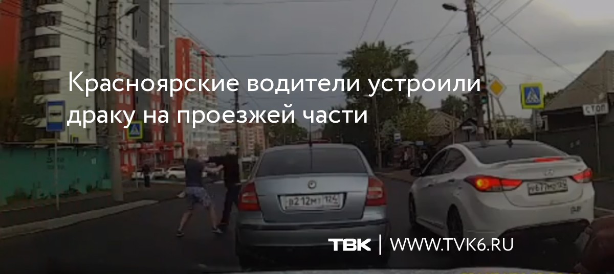 Видео происшествия выложили очевидцы в группе «ЧП Красноярск» во «ВКонтакте». На записи видно, как на светофоре к водителю Skoda подходит мужчина в черном, водитель выходит из машины и отталкивает его. После словесной перепалки между водителями начинается драка.