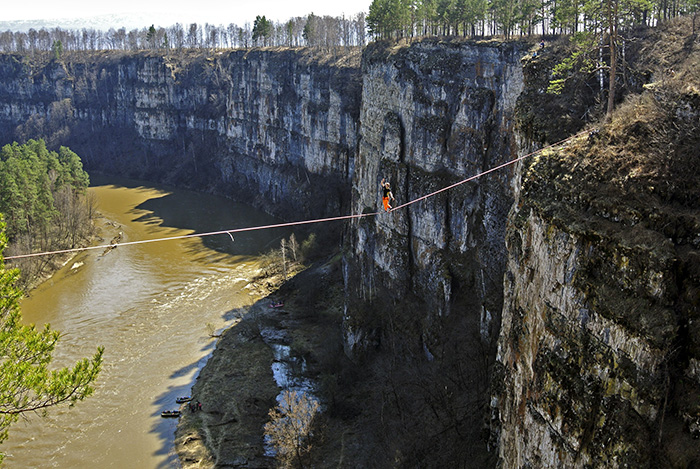 С другой стороны, то, что нас увидели, кончено, плюс: я за развитие нашего спорта в России. Сейчас слэклайн в России не развит — его сложно осваивать. Мы сами покупаем стропы, сами всё организовываем.