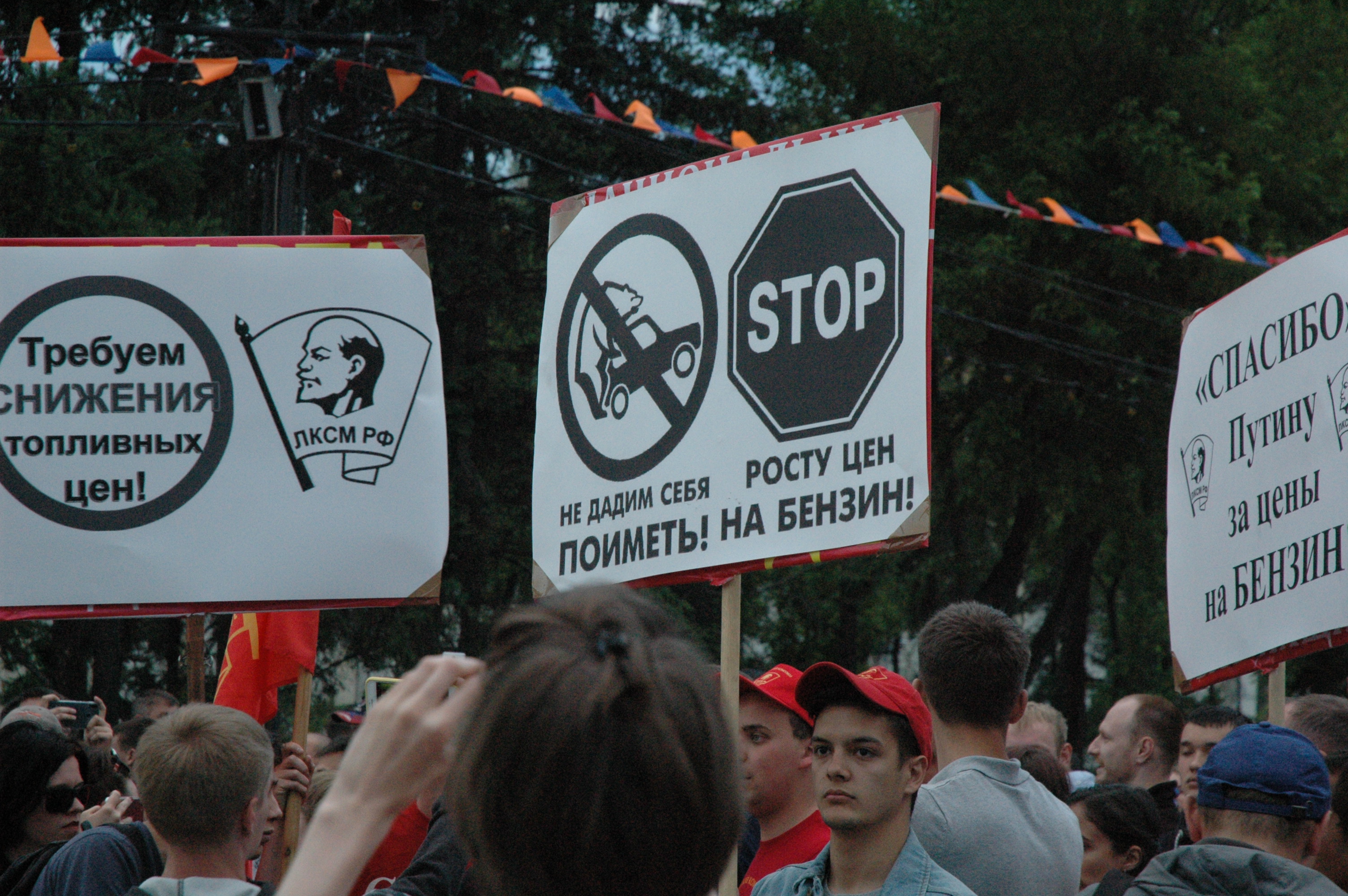 По данным Росстата, в конце мая средняя цена на бензин в Иркутске достигла 42 рублей за литр, обогнав темпы инфляции в 5 раз. Участники иркутского протеста заявили, что не требуют национализации нефтегазовых компаний, но просят чиновников повлиять на "странообразующую отрасль" России.