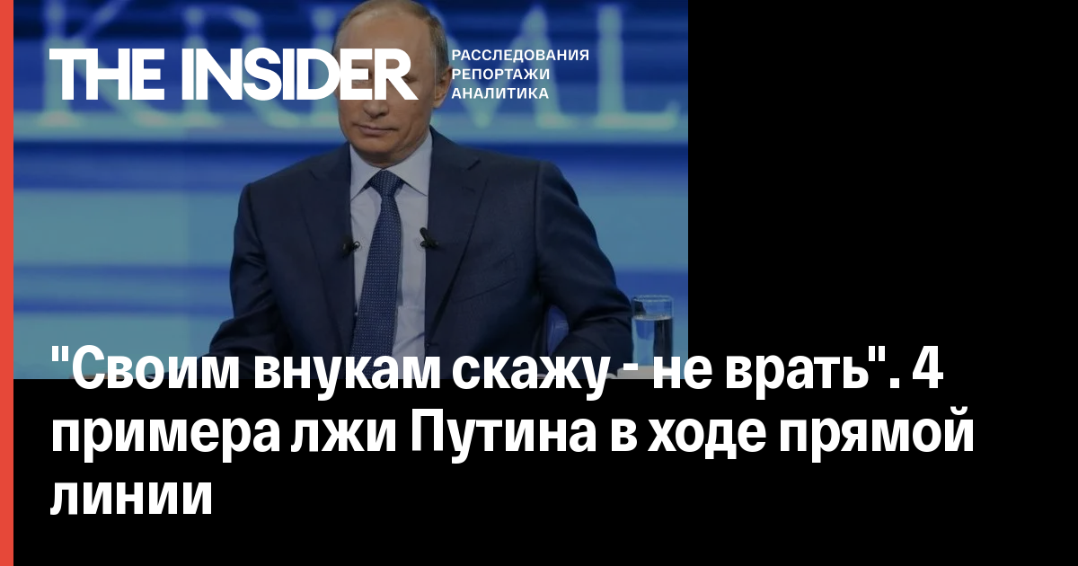 7 июня прошла очередная прямая линия президента Владимира Путина, в ходе которой он отвечал на вопросы «простых» россиян, ведущих федеральных телеканалов, людей, представлявшихся известными блогерами, и депутатов Госдумы. В целом выступление президента свелось к повторению мифов, которые The Insider уже разоблачал, так что отыскать свежие примеры дезинформации оказалось непросто. Но мы справились.