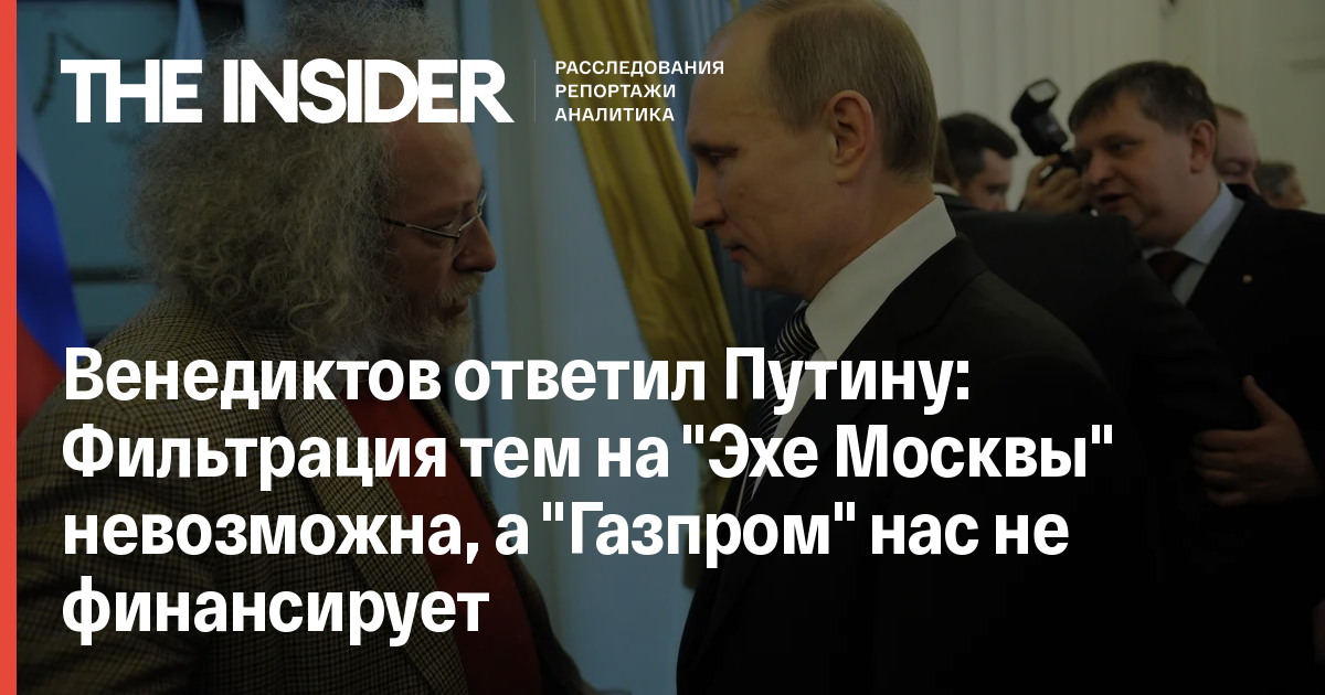 Венедиктов ответил Путину: Фильтрация тем на "Эхе Москвы" невозможна, а "Газпром" нас не финансирует