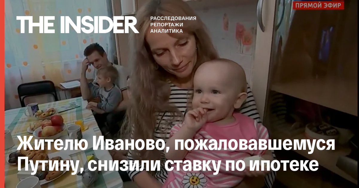 Жителю Иваново Дмитрию Верховскому снизили ставку по ипотечному кредиту с 13 до 9,5% через несколько часов после того, как в ходе прямой линии он попросил об этом президента Владимира Путина. Об этом сообщает РБК.