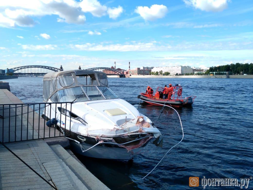 Катер врезался в набережную Невы у Большеохтинского моста. Пострадал водитель катера и его пассажир.