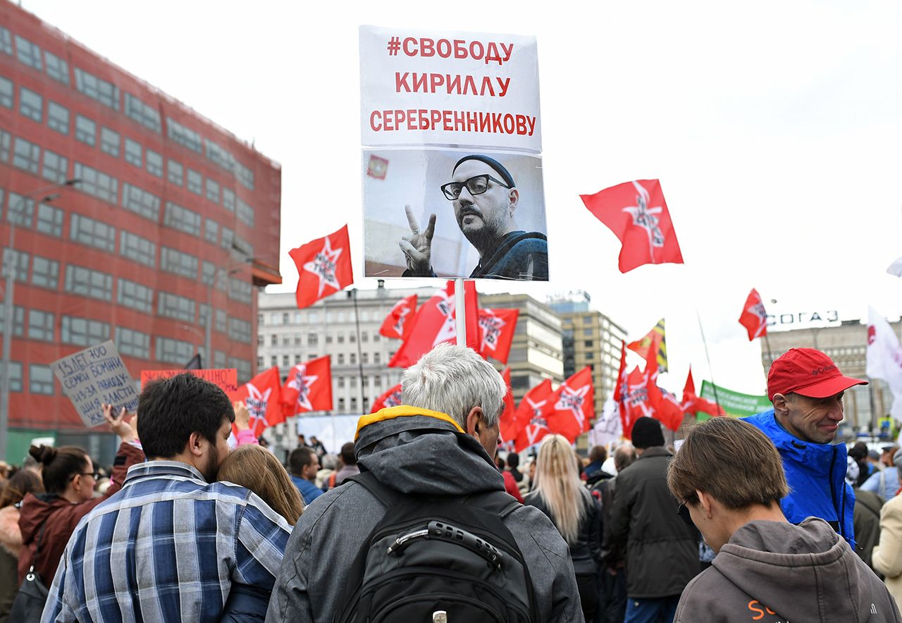 Режиссер Аскольд Куров, который снял фильм «Процесс» об Олеге Сенцове, рассказал, что видел его совсем недавно. «Он не собирается вступать с властью в диалог. Он требует только исполнения его условия — отпустить всех политзаключенных. Еще он передает привет всем, кто его не забывает и поддерживает», — сказал Куров. Он говорил негромко. Во время его выступления в толпе громко обсуждали свою проблему дольщики, которых обанкротившийся застройщик «оставил без шиша в кармане». Их попросили говорить потише. «Мы против беспредела застройщиков! Мы против беспределов застройщиков!» — дружно начали скандировать в ответ мужчины с зелеными плакатами с надписью «Донской».