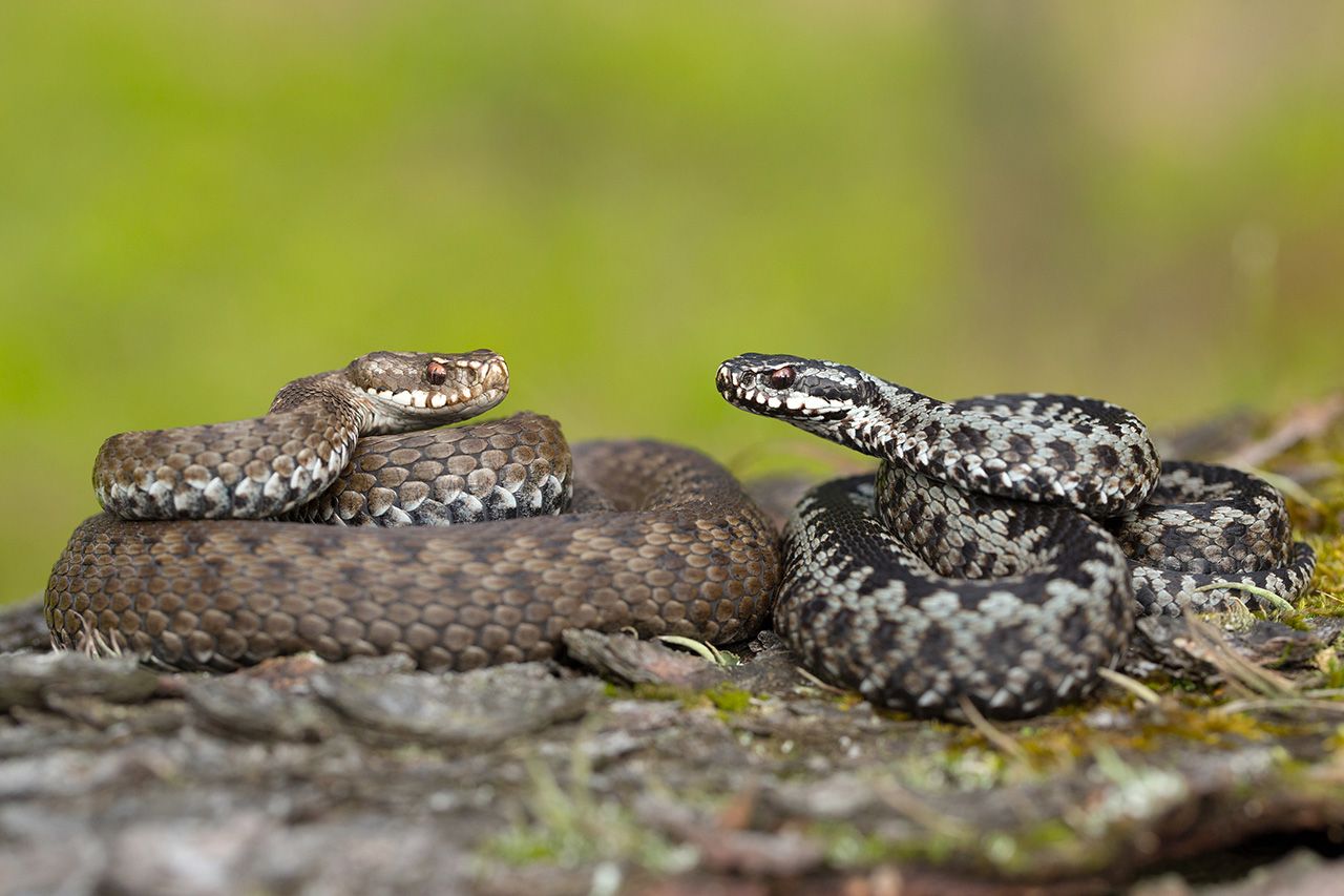 У гадюк (мы сейчас говорим об обыкновенных гадюках, а есть и другие виды) окрас тела бывает разный — серый, коричневый, бурый и не только. Обычно вдоль спины гадюки зигзагом проходит темная линия, но так бывает не всегда — некоторые особи совершенно черные.