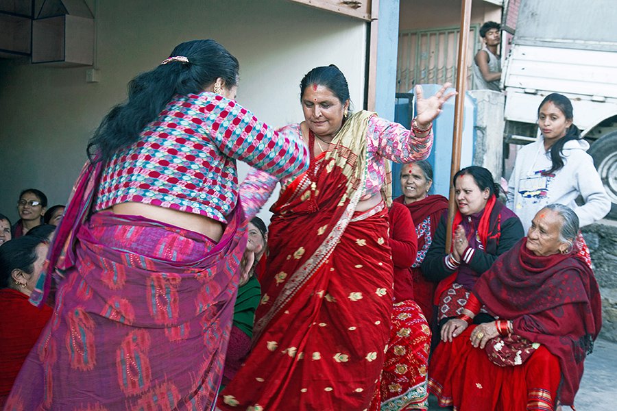 Однажды мне повезло попасть на «грязные танцы» прямиком в инсайт местной свадебной традиции, проводимой у дома невесты. Две женщины ударялись пузырями животов друг об друга и тряслись что есть мочи: словно одержимые кровожадными духами, они испускали из себя всю человеческую дрянь. За присутствие пришлось платить танцем в ответ. Исполнила свои чудаковатые движения змееглазого осьминога. В 2005 году Верховный суд Непала запретил традицию чаупади — практику выселения женщин во время менструации в хлев, чем, собственно, общество приблизилось к прогрессу. Женщины выглядят счастливыми, несмотря на тяжёлую работу и тот факт, что жить приходится порой на изнанке красот.