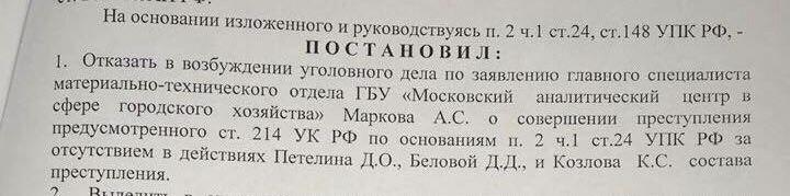 Петелина признали виновным по статье 20.1 КоАП (мелкое хулиганство). Суда по административному делу Петелина не было — ему выдали квитанцию на оплату штрафа в отделе полиции при МГУ.