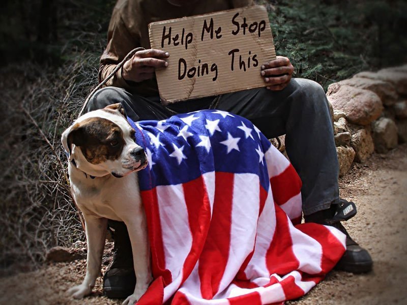 Нищий и собака с американским флагом flickr.com ООН опубликовала отчет своего специального докладчика по вопросу о крайней нищете в США и правах человека. Автор отчета Филип Алстон раскритиковал ситуацию с бедностью в США. Американским СМИ этот отчет очень не понравился.