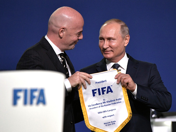 Владимир Путин на заседании 68-го конгресса Международной федерации футбольных ассоциаций с президентом ФИФА Джанни Инфантино kremlin.ru Американская газета The New York Times со ссылкой на финансовые документы ФИФА сообщает, что организация планирует заработать на чемпионате рекордные 6,1 млрд долларов, это на 10% больше, чем организация планировала заработать изначально. На предыдущем чемпионате в Бразилии ФИФА заработала 1,3 млрд долларов. Деньги ФИФА получит за счет продаж прав на телетрансляции матчей, а также спонсорских контрактов.