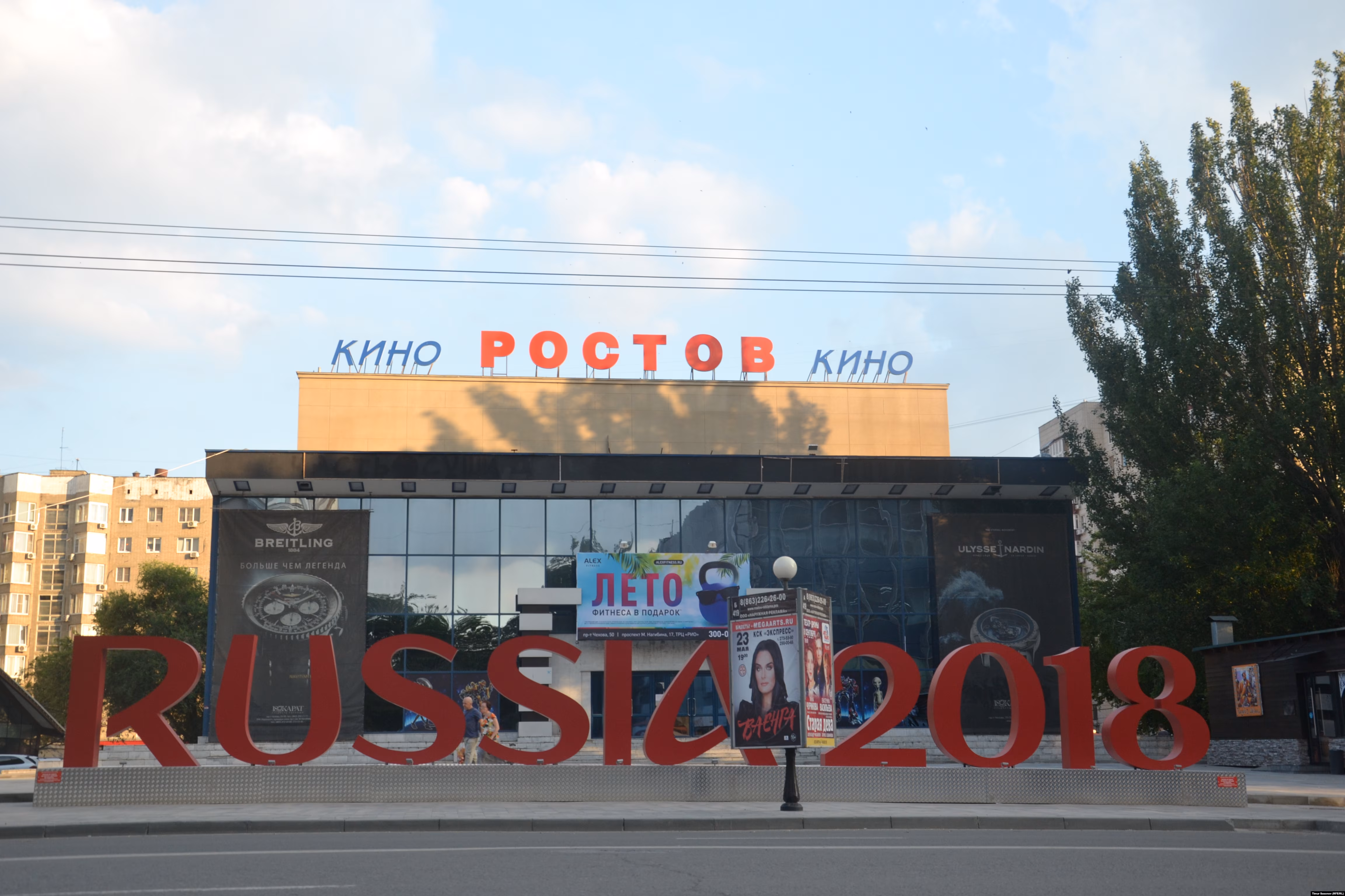Если "сердцем" Левого берега Дона стал стадион, то на другом берегу главное место притяжения болельщиков – фан-зона. Она расположилась на Театральной площади города, прямо напротив знаменитого театра Горького – здания, выполненного в стиле конструктивизм: очертаниями оно напоминает трактор. Уже несколько лет в театре идет реконструкция, к чемпионату мира ее закончить не успели, поэтому бóльшую часть театра просто завесили баннерами.