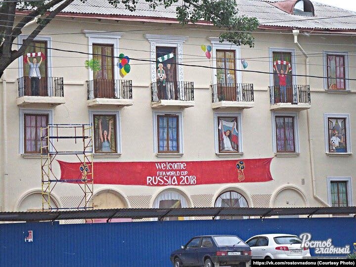 Так или иначе, пожалуй, именно эта картинка прославила пока Ростов накануне чемпионата мира больше всего. Около 250 старинных зданий Ростова пришлось завесить баннерами.