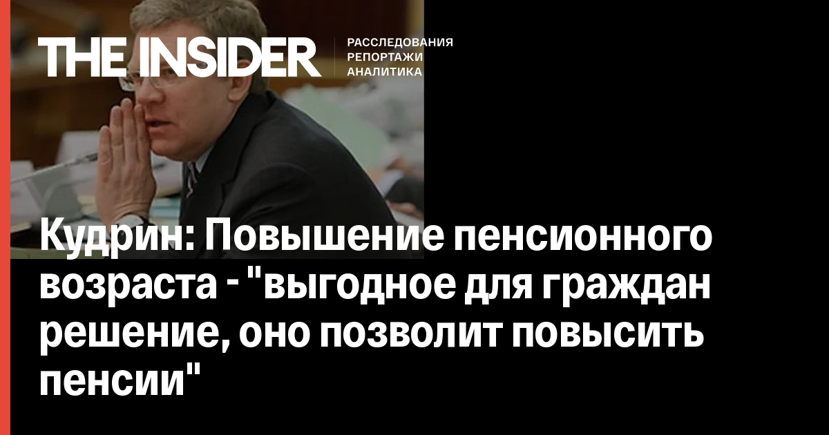 «Оно позволит повысить пенсии», — написал Кудрин в твиттере. По его словам, пенсионная реформа «назрела давно». «Наконец, решение принято», — написал Кудрин.