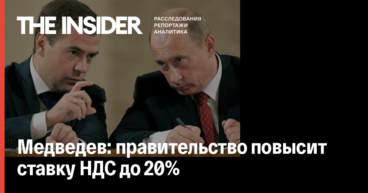 «Мы остановились на следующих решениях, которые предлагаются к рассмотрению. Первое — будет изменена ставка налога на добавленную стоимость. Сейчас базовая ставка НДС — 18%. Предлагается сделать ее 20%», — сказал Медведев.
