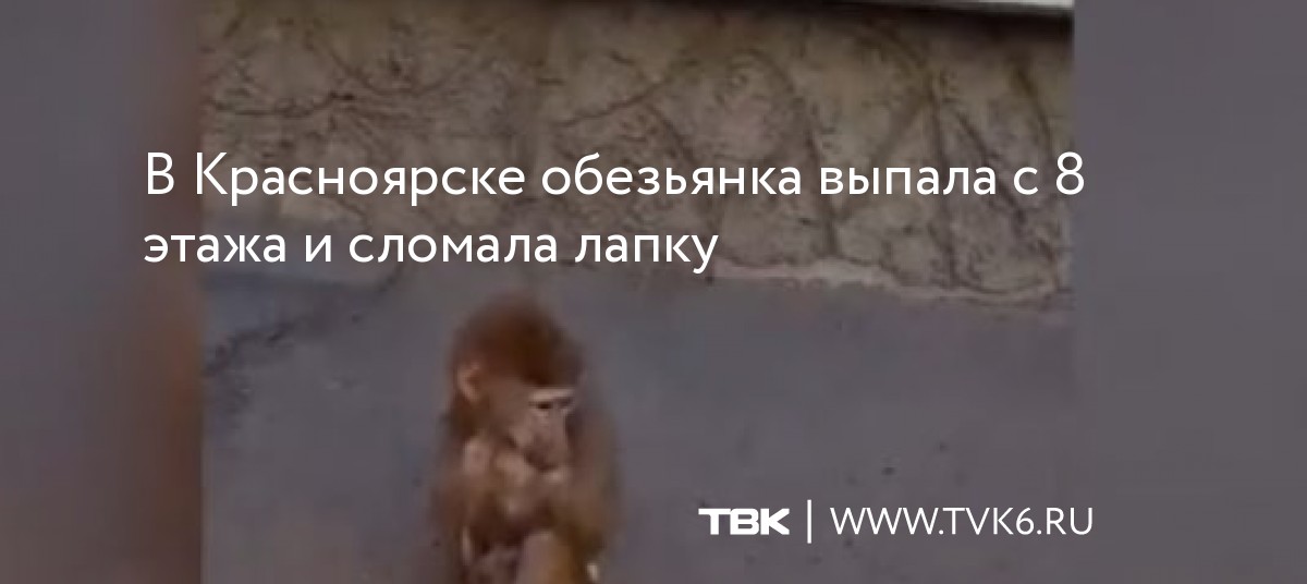В Красноярске обезьянка выпала с 8 этажа и сломала лапку