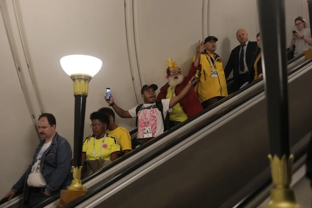 Пришла охота — отворяй ворота. Лужниковское пространство, за сутки до открытия мундиаля бывшее оживленным, но не более того, в четверг забурлило по-настоящему. Еще начиная с «Воробьевых гор», откуда, согласно заботливому голосу диктора, осуществляется выход к сектору D. И где уже на платформе зажигали перуанцы с мексиканцами. Они ребята такие, раскручиваются с пол-оборота, и никакой подзарядки не надо.