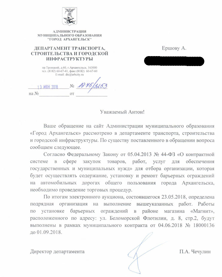 Возможно, одержана локальная победа в войне за тротуар. Если верить ответу из администрации Архангельска, скоро пешеходная зона на площади Терехина, у магазина «Магнит» будет физически ограничена от автомобилей.