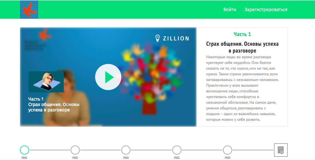 Пример удачного разделения лекции на небольшие части можно увидеть в курсе «Как научить волонтеров общаться?»
