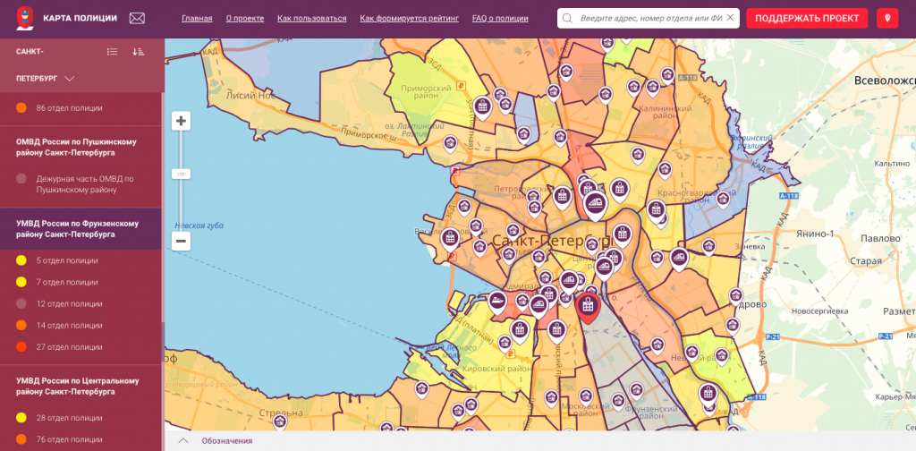 "Карта полиции" – интерактивный онлайн-сервис, который поможет найти информацию об отделе полиции