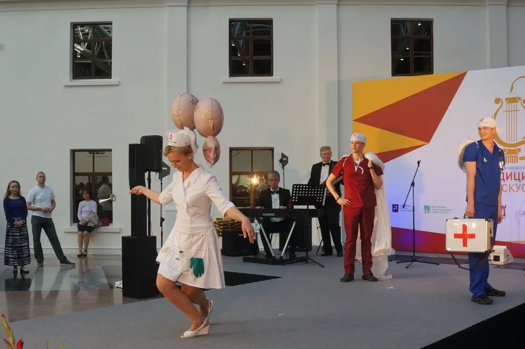 Городская поликлиника № 201, Госпиталь ветеранов войн № 1, Городская клиническая больница имени Вересаева, Детский бронхо-легочный санаторий № 23… В конкурсном показе мод, посвященном II Московскому фестивалю «Медицина как искусство» пятничным вечером участвовали почти все крупные учреждения здравоохранения столицы. Доктор-супергерой: «Посмотрите-ка, что за очки! От флюорографии вам не уйти» и сестры милосердия: «Я сниму вам ЭКГшку и исследую мочу, для подъема настроенья я немного пошучу».