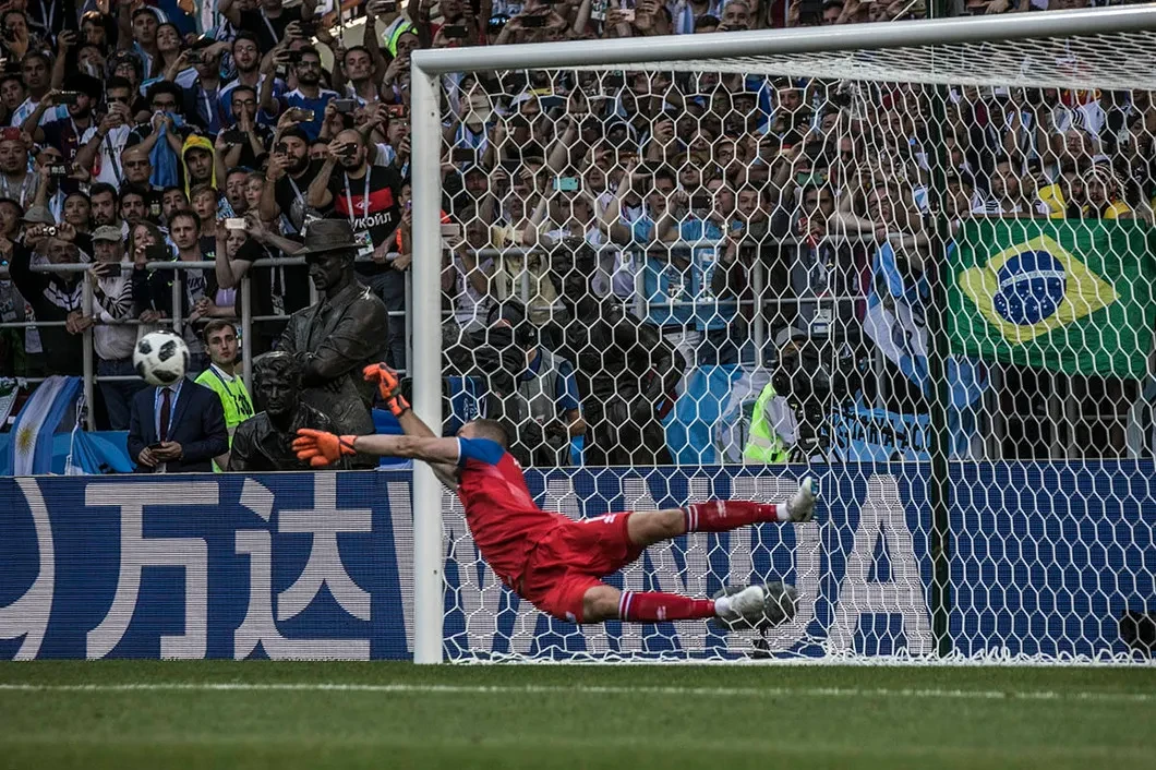 Путь от станции метро «Спартак» пролегал через плотную галдящую беззаботную толпу, в которой преобладали люди в темно-синем и полосатом бело-голубом. Было много солнца и много улыбок, с нулем намека на агрессию. У соперников не было ни плохой, ни хорошей истории, ее только предстояло начать писать здесь, в Москве, на спартаковском стадионе, который тоже принимал первый в своей истории матч чемпионата мира.