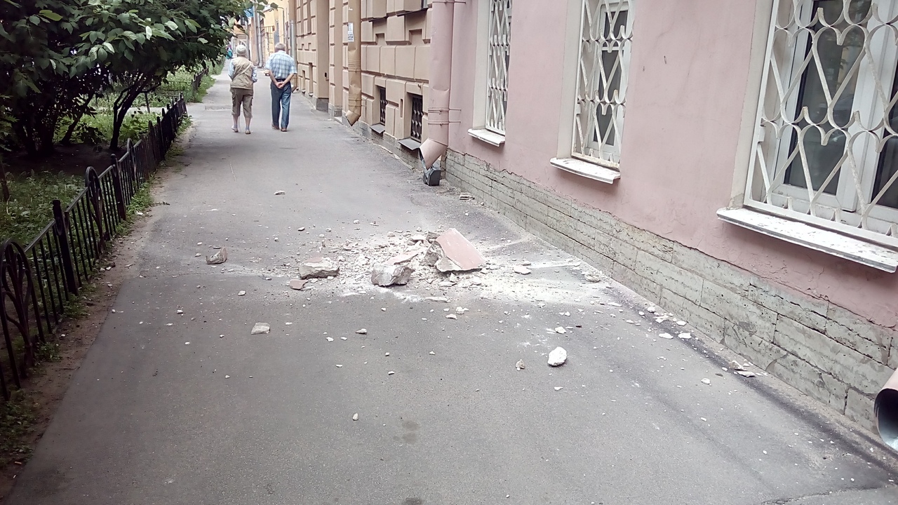 Кусок штукатурки упал с дома 44 по 4-й Советской улице, едва не задев прохожую. Об этом сообщают очевидцы.
