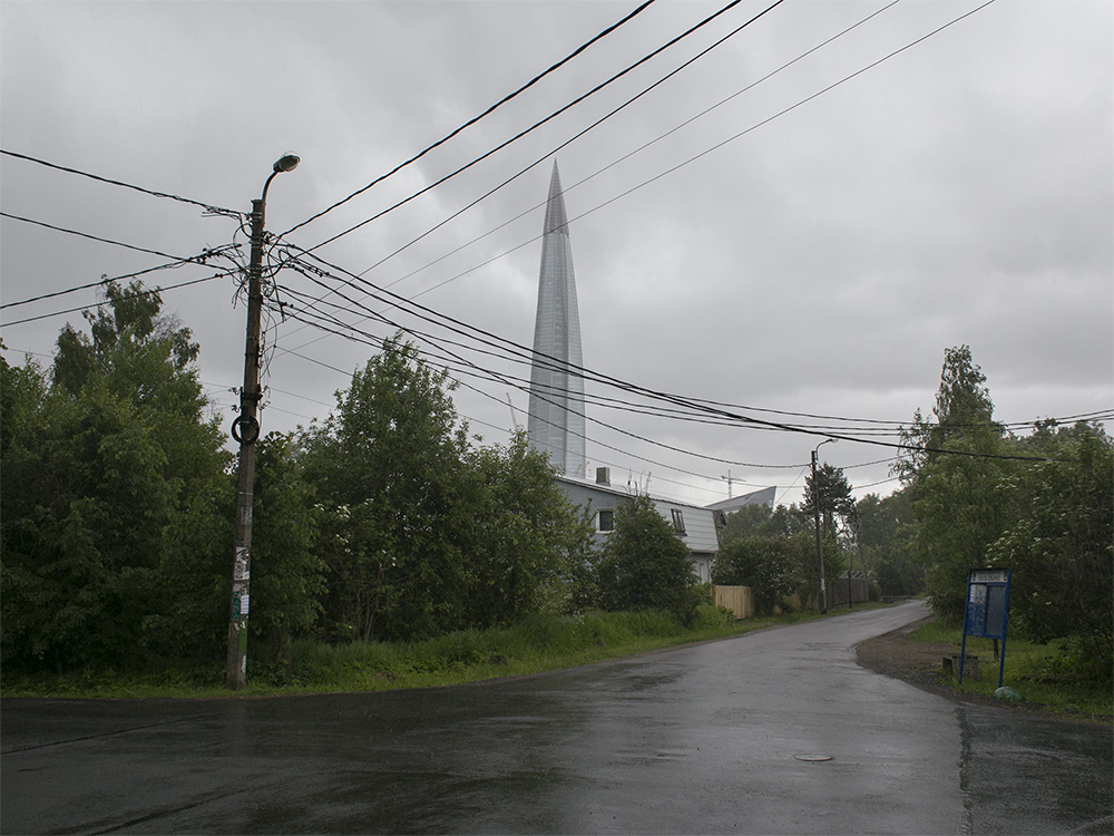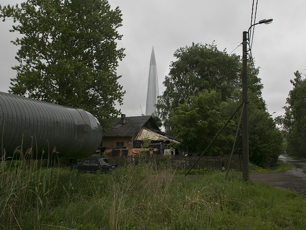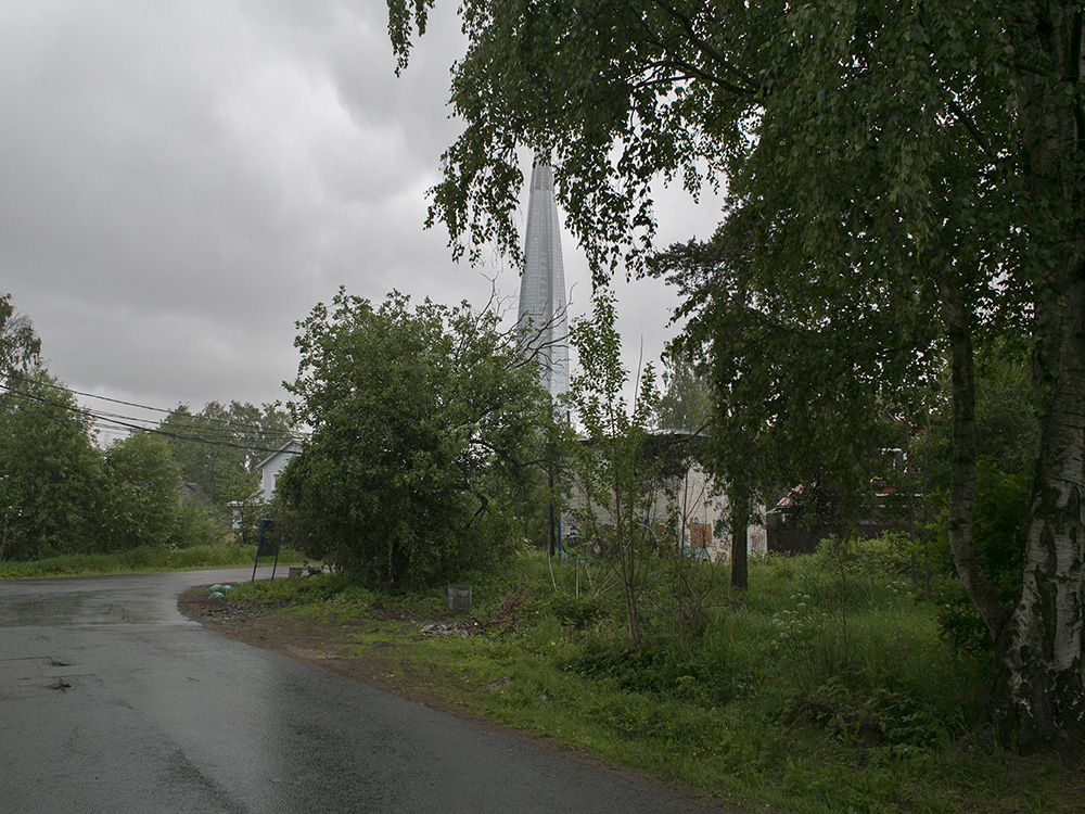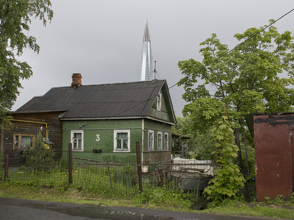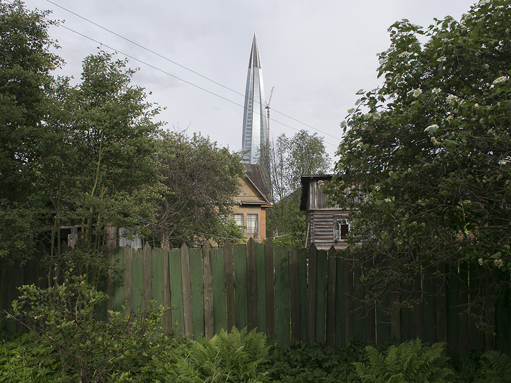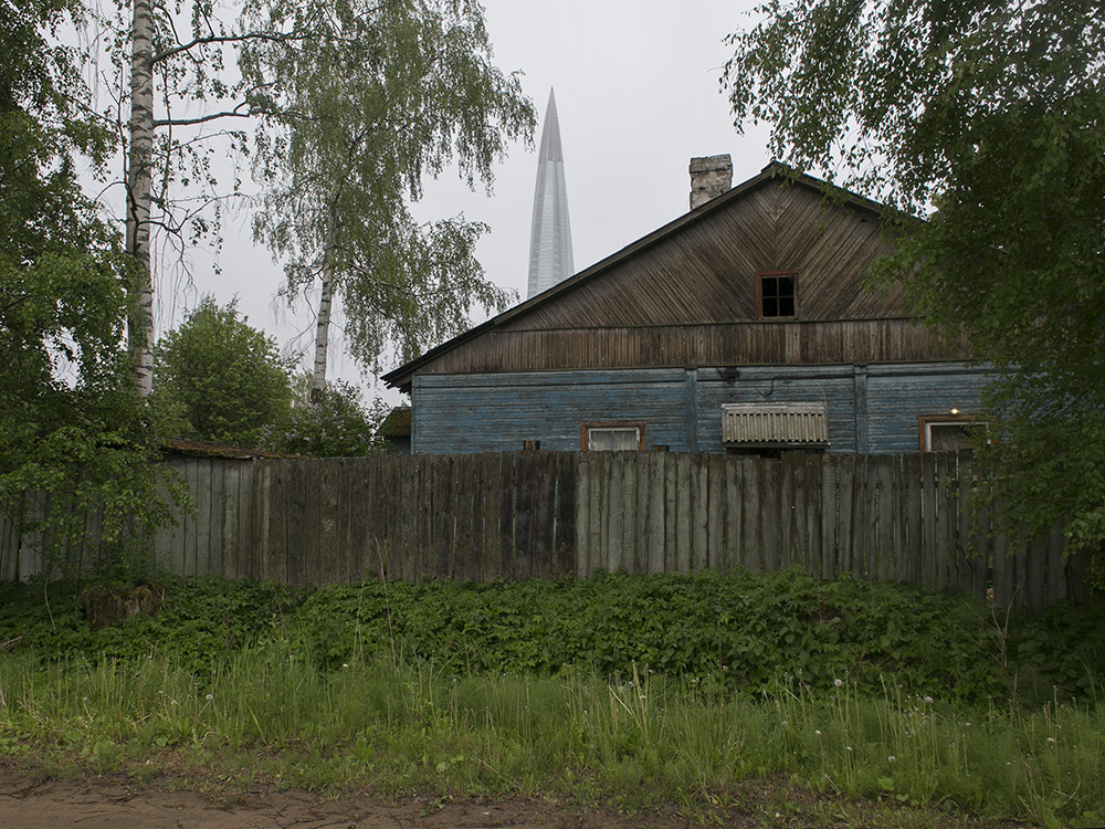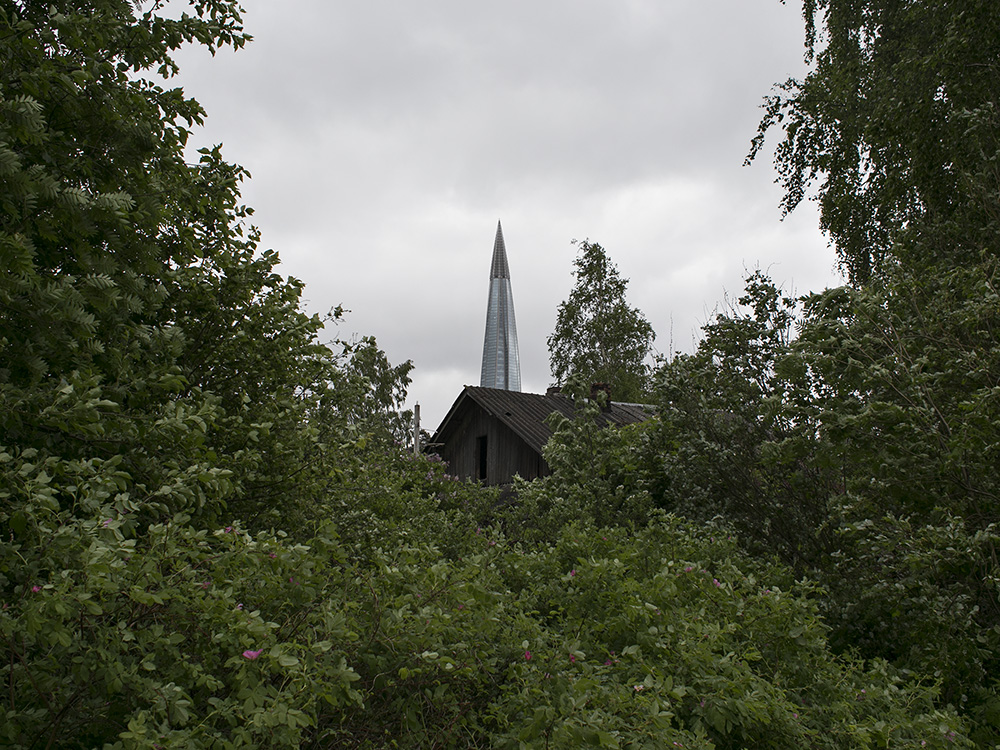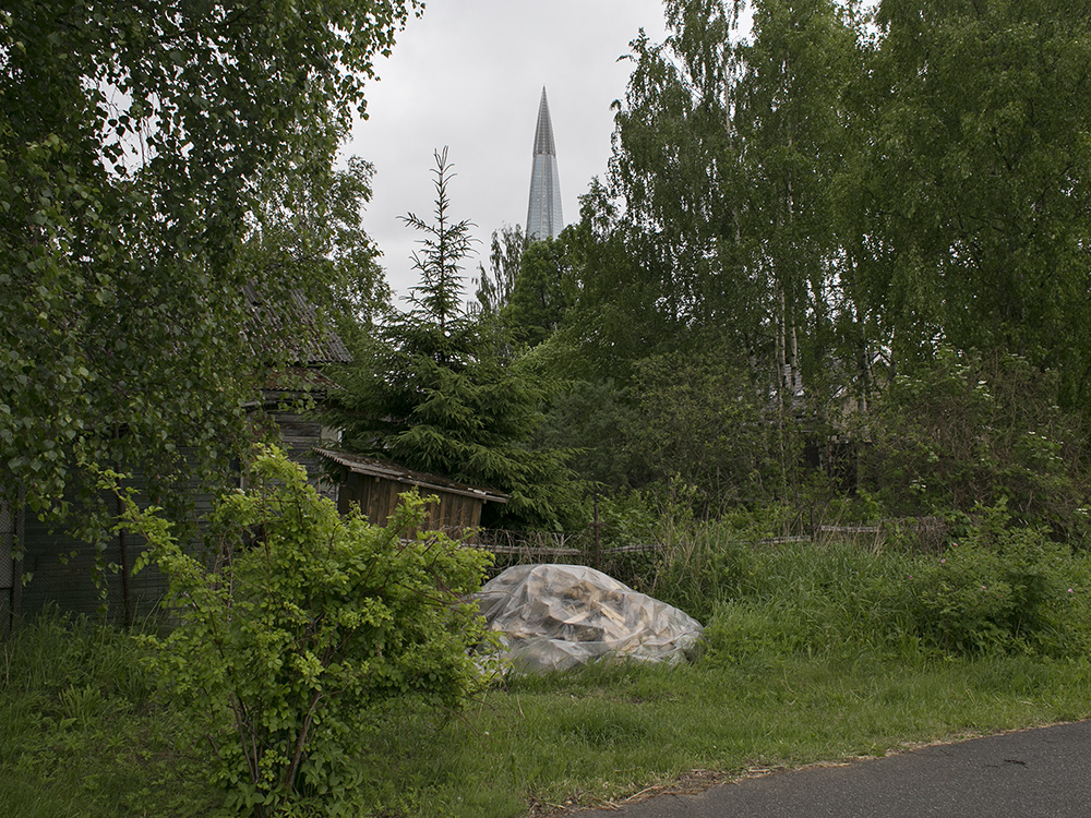 Сейчас пасторальные виды Лахты с покосившимися деревянными домами изменились: над деревней возвышается 462-метровая башня «Лахта Центра». И теперь небоскреб на фоне местного кладбища, железной дороги и деревенских построек — это настоящий киберпанк.