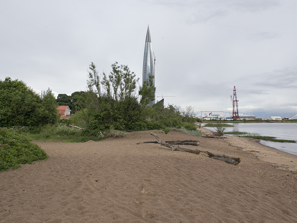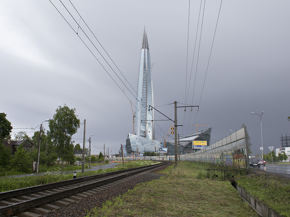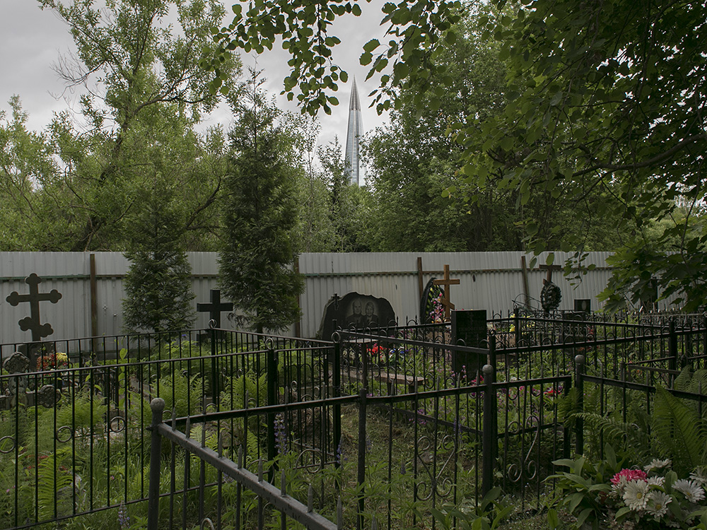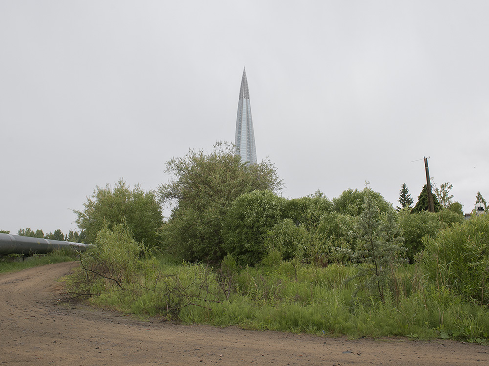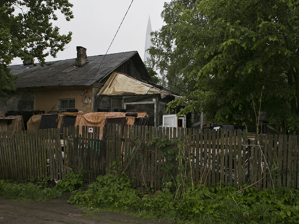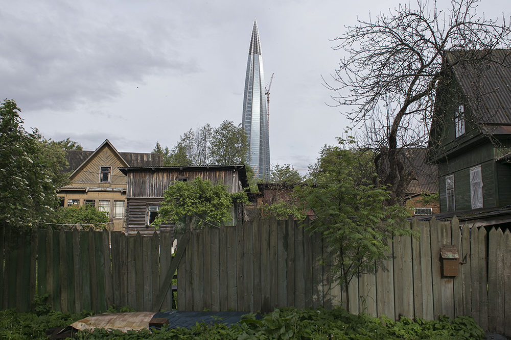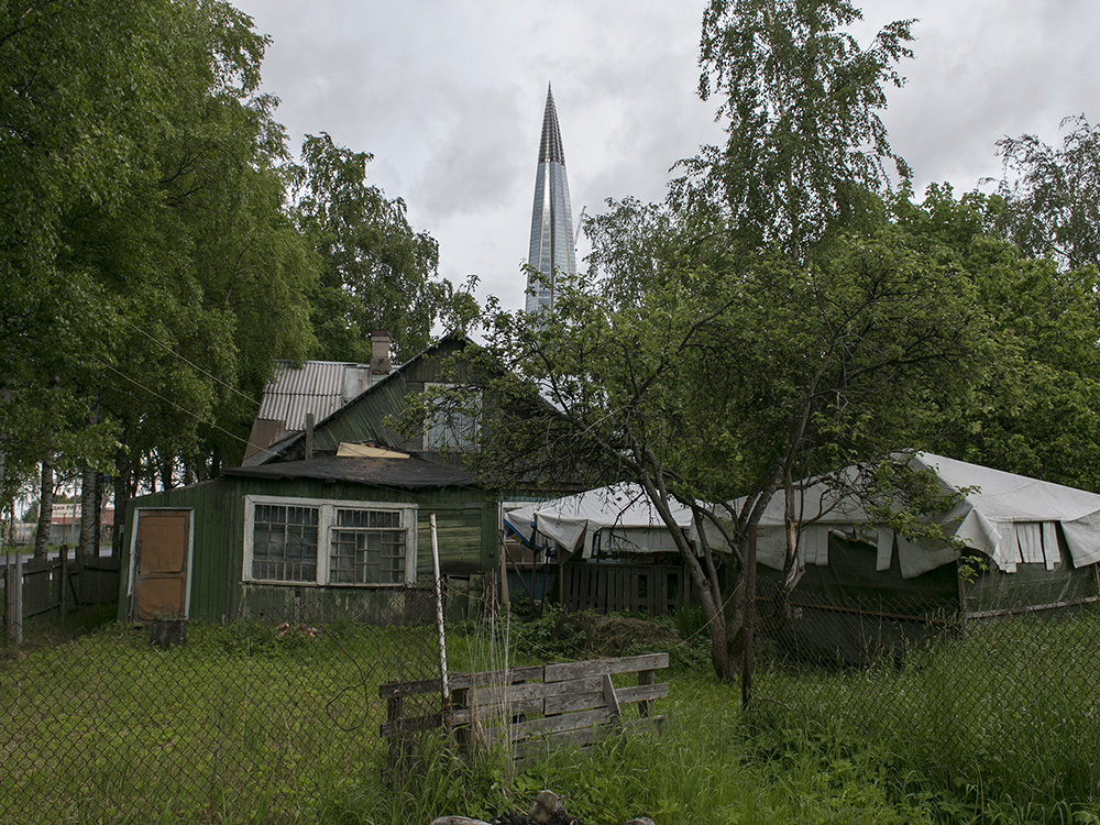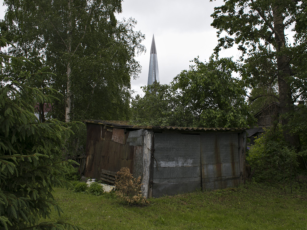 Сейчас пасторальные виды Лахты с покосившимися деревянными домами изменились: над деревней возвышается 462-метровая башня «Лахта Центра». И теперь небоскреб на фоне местного кладбища, железной дороги и деревенских построек — это настоящий киберпанк.