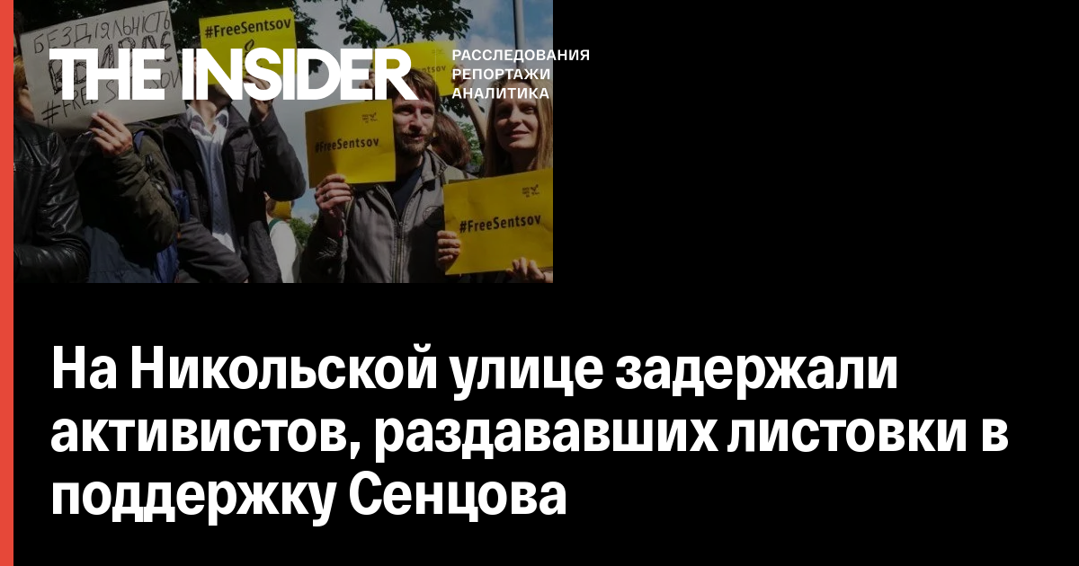 В центре Москвы на Никольской улице полиция задержала четырех активистов, раздававших листовки в поддержку украинского режиссера Олега Сенцова, находящегося в российской колонии. Об этом рассказал The Insider один из задержанных, актер Григорий Гандлевский.