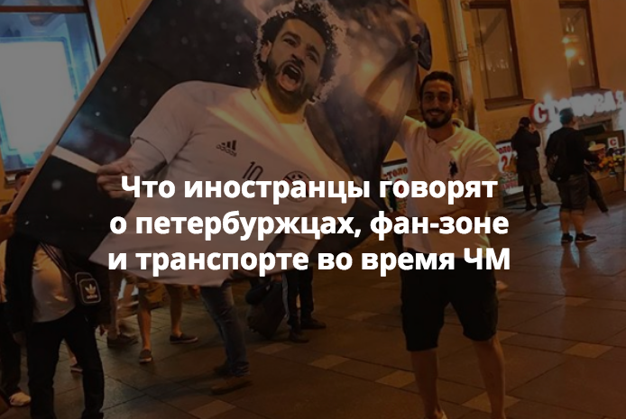 «Бумага» собрала, что пишут в соцсетях иностранцы, приехавшие в Петербург во время чемпионата мира по футболу, о городе и его жителях.