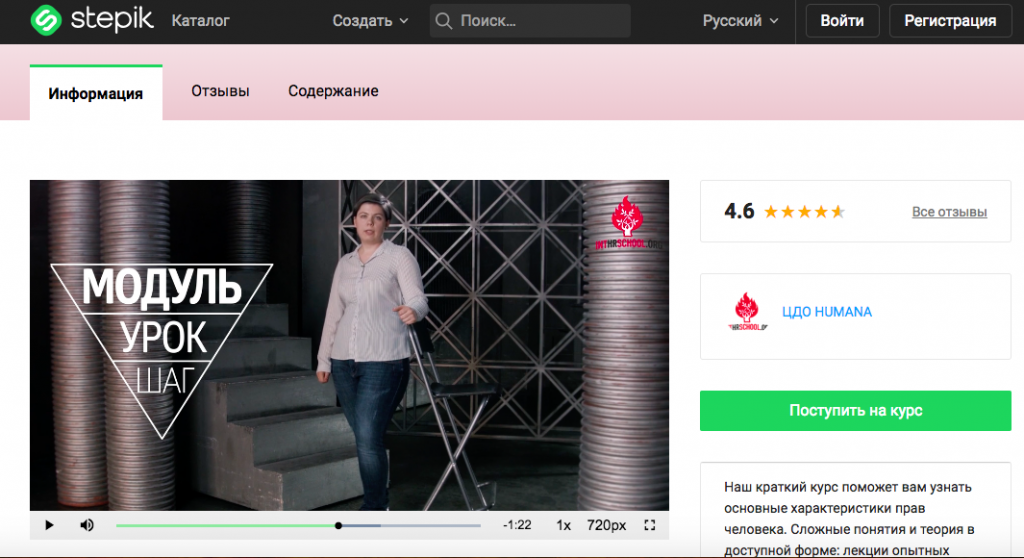 Курс по правам человека длится два часа, он получил оценку 4,6 балла из пяти, более 30 слушателей оставили отзывы.