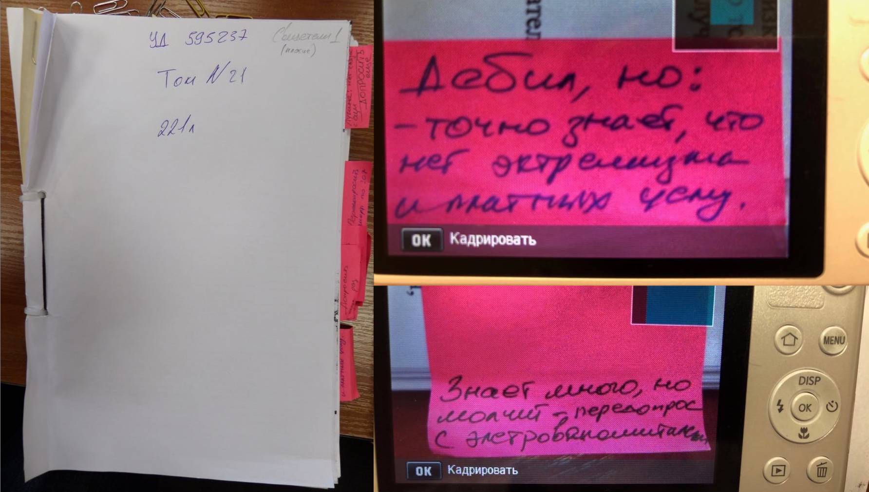 «Передопрос с электровспоминателем», «допросить еще», «дебил, но точно знает, что нет экстремизма и платных услуг» — розовые стикеры с такими подписями оставили на одном из томов уголовного дела следователи ФСБ, которые ведут дело прихожан Саентологической церкви Петербурга. Том с этими стикерами, вероятно, по ошибке выдали адвокатам для ознакомления с материалами дела.