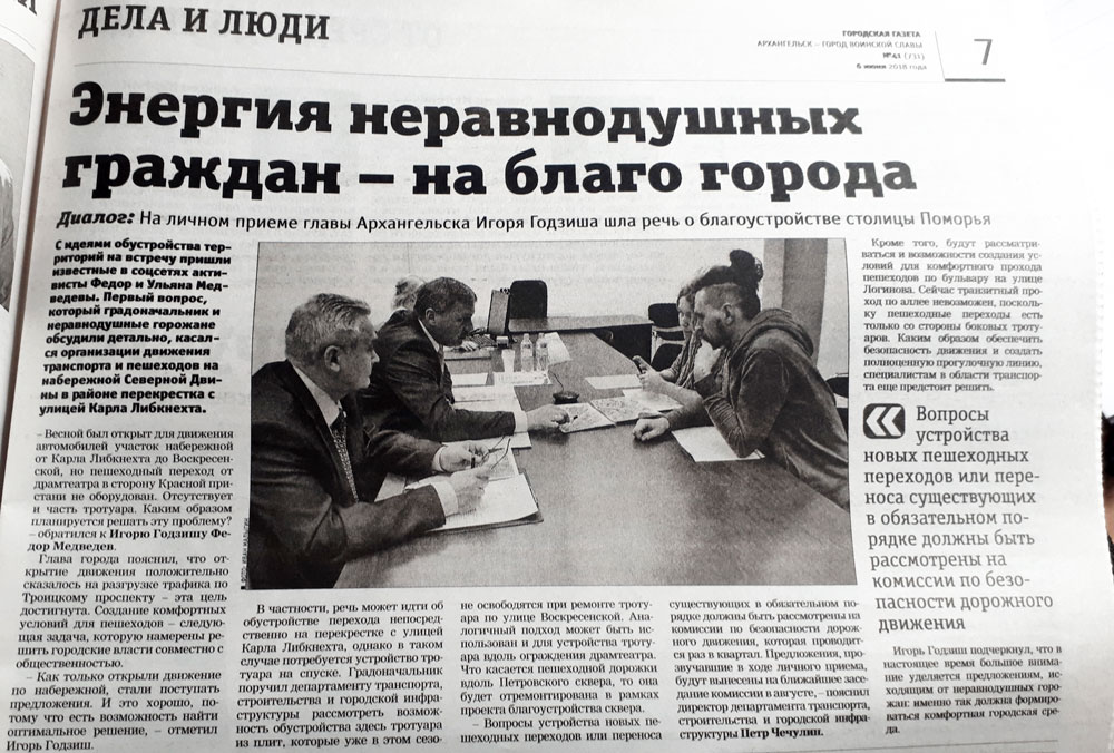Подходы есть, проблема известна, но не решается. Зато в газете Администрации пишут про «диалог с населением» и необходимость обустройства перехода набережной Северной Двины на недавно открытом для машин участке.
