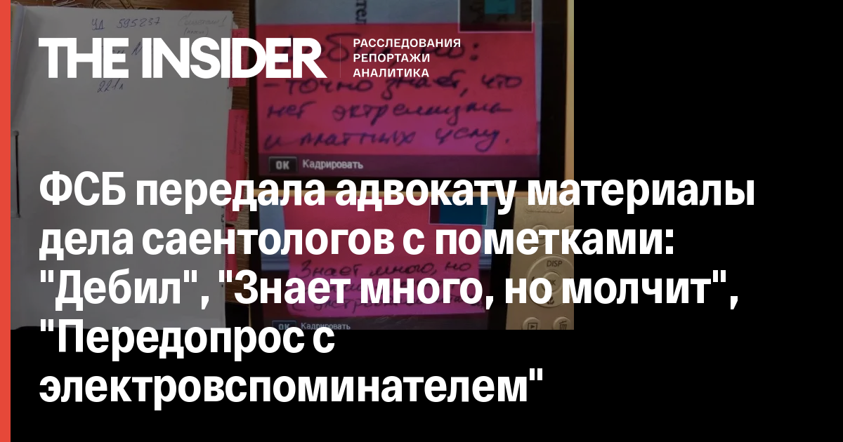 ФСБ передала адвокату материалы дела саентологов с пометками: "Дебил", "Знает много, но молчит", "Передопрос с электровспоминателем"