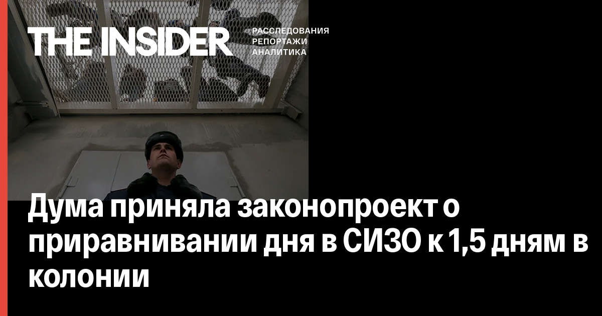 Дума приняла законопроект о приравнивании дня в СИЗО к 1,5 дням в колонии