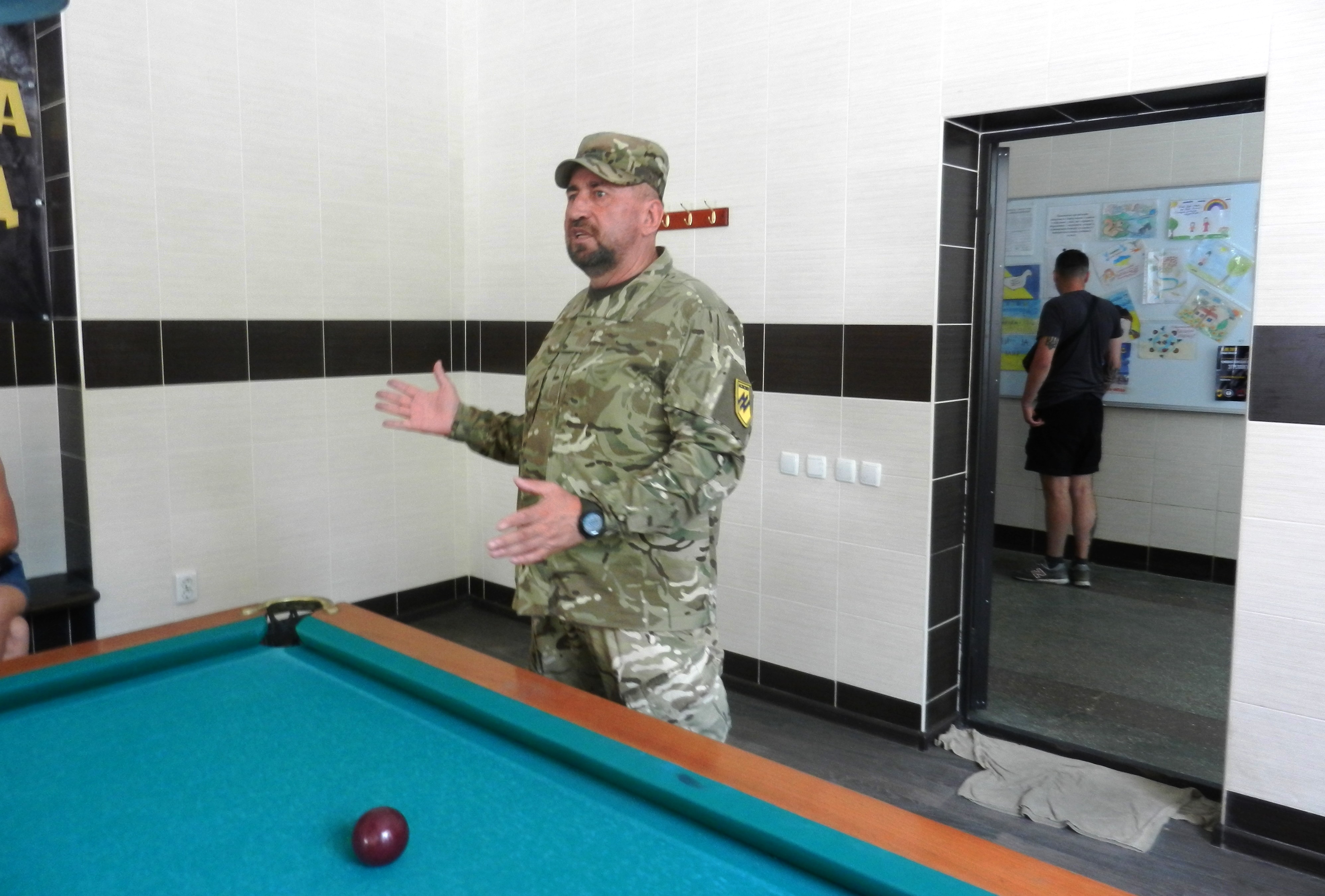 "На полигоне выживать боец не должен, боец на полигоне должен учиться, где-то помыться, где-то поесть и где-то комфортно переночевать! – рассказывает Базель о своем хозяйстве. – У нас тут модульная столовая с кухней, 44 модуля для проживания, модульный класс для учебы, электрогенератор. Скважина для воды, и на лето мы завозим сюда полевую баню. Ну и санузлы, умывальники – это само собою. Для школы имени Коновальца сделана казарма на 56 человек, спортивное местечко, полоса препятствий и прочие элементы полевого лагеря. 280 человек максимально может работать на полигоне".