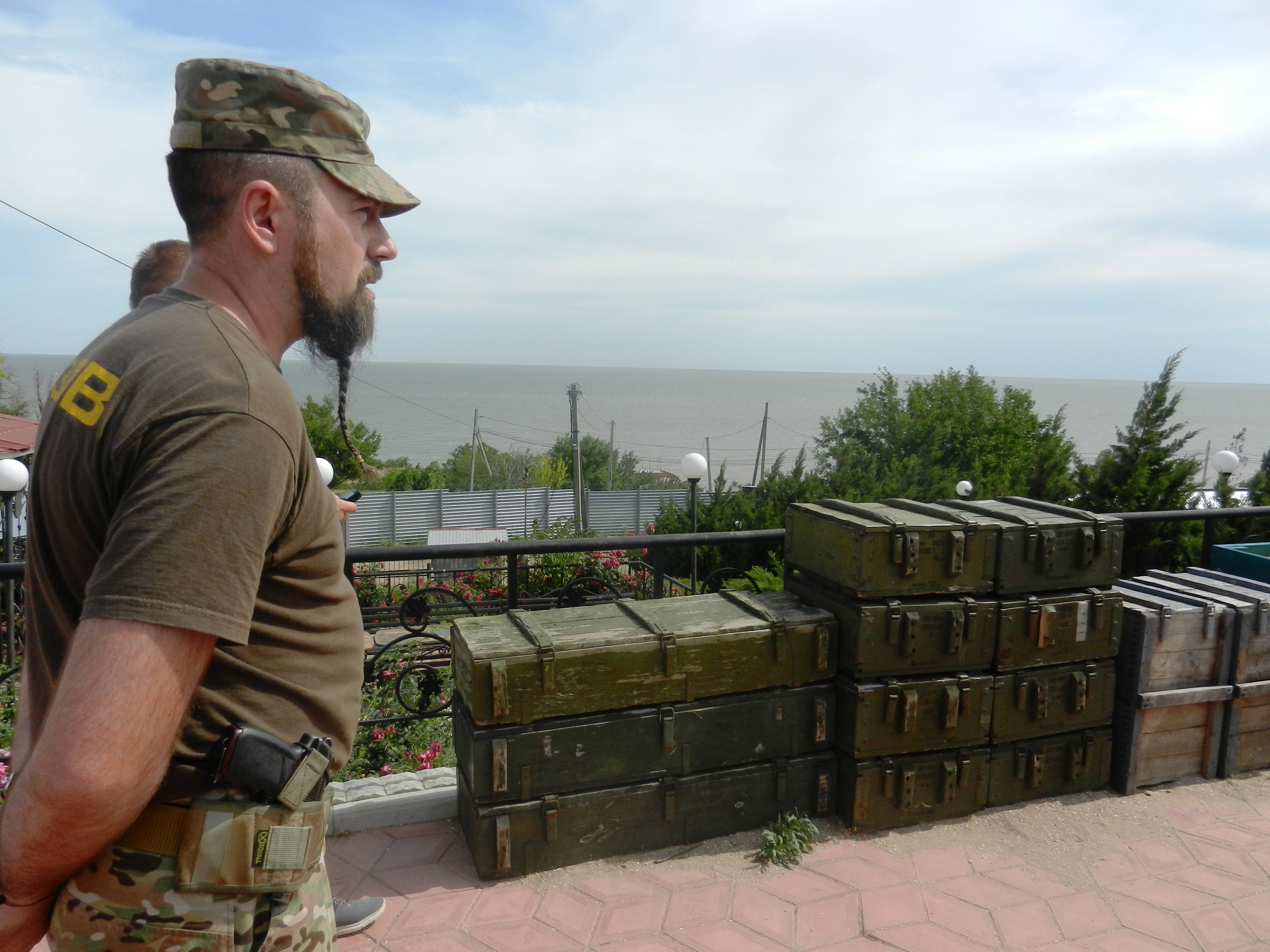Еще Чак демонстрирует вещевой и продуктовый склады. Многократно повторяет, что к Национальной гвардии у него претензий нет, они просто работают в своей системе координат на те деньги, что им выделяет государство, по правилам, установленным этим государством. Для журналистов открывают тушенку – "свою" и присланную из НГУ. Присланная – с кусками кожи и пахнет не очень, "своя" – хорошая. Сделаны по одному ГОСТу на территории Украины, "своя" – совсем рядом в Мангуше (районный центр рядом с Мариуполем).