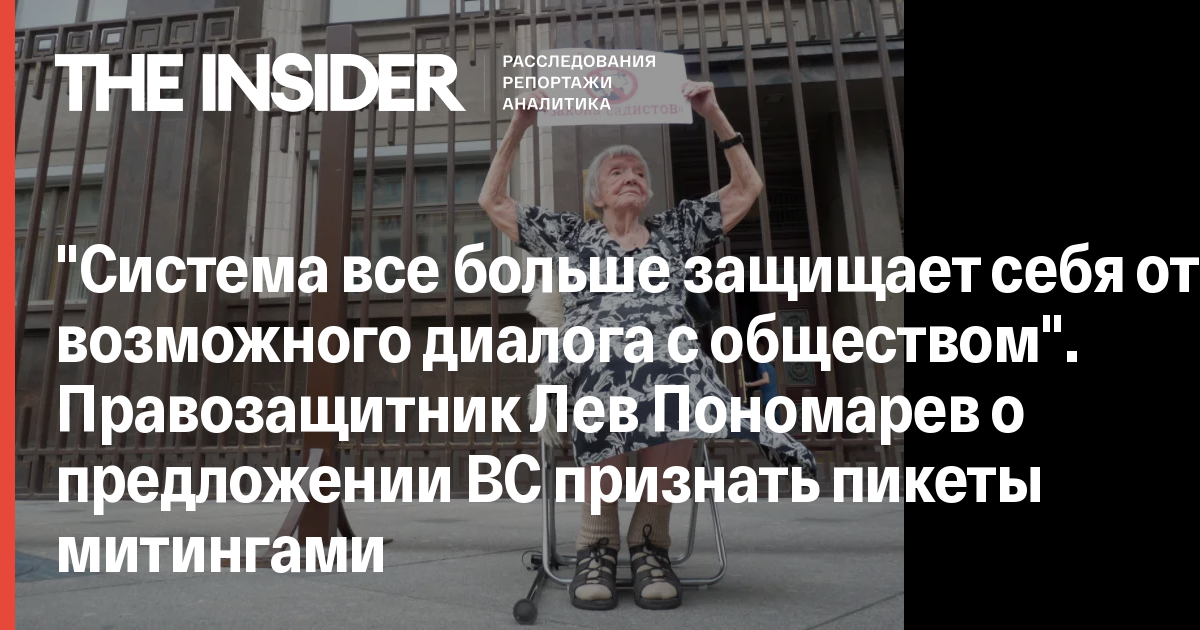 Пленум Верховного суда внес предложение приравнять проводящиеся одновременно одиночные пикеты к несогласованным митингам. Проект пока не принят и дорабатывается специальной группой. Согласно его тексту, организаторы одновременных одиночных пикетов должны нести административную ответственность за нарушение установленного порядка организации митинга (ст. 20.2 КоАП).О том, почему это решение будет принято без лишних споров, The Insider рассказал директор общероссийского движения «За права человека» Лев Пономарев.