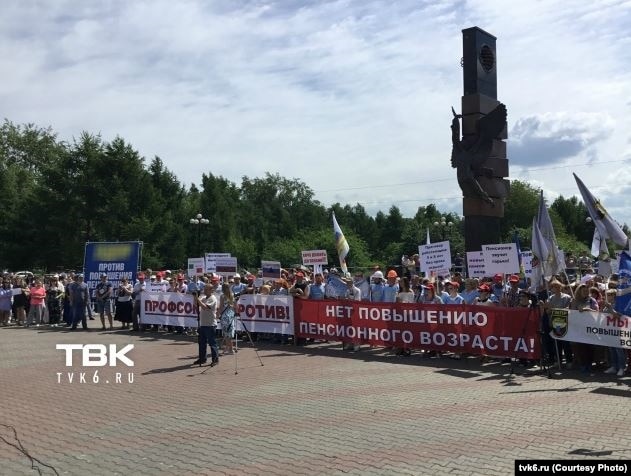 Правительство России предлагает поднять возраст выхода на пенсию до 65 лет для мужчин и 63 лет для женщин. Премьер-министр Дмитрий Медведев заявил, что реформа должна осуществляться поэтапно. Соответствующий законопроект Государственная дума в первом чтении рассмотрела 14 июня. Позже стало известно, что Кремль может смягчить пенсионную реформу, опасаясь акций протеста.