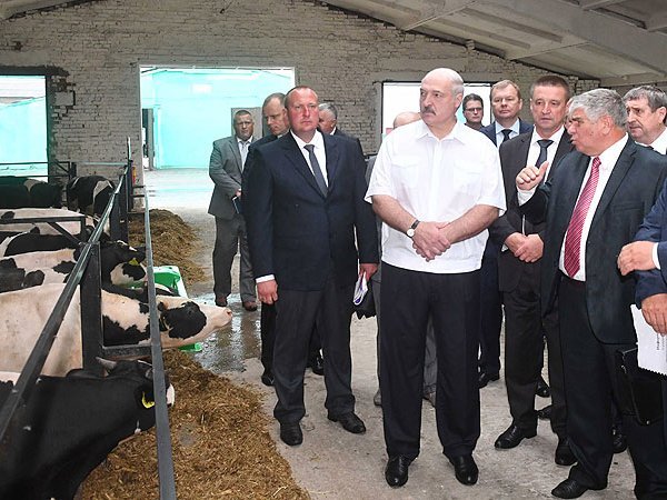 Александр Лукашенко в комплексе по откорму скота ЗАО «Большие Славени» Пресс-служба президента Белоруссии Президент Республики Беларусь Александр Лукашенко во время рабочей поездки в Шкловский район встретился с представителями сельскохозяйственного сектора страны, потребовав от них качественной работы. По его словам, в противном случае независимость государства будет в прошлом.