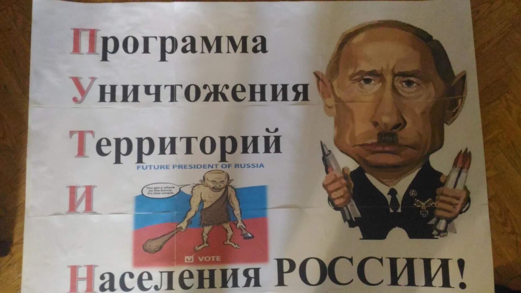 Были изъяты плакаты с отрывком из книги "Незнайка на Луне" с диалогом о полицейских и богачах и незаконченный плакат о Путине. После обыска меня повели в полицию, где подполковник объяснил, что я, конечно, могу воспользоваться статьей 51 Конституции, но тогда меня ждет бутылка из-под шампанского, видимо, как в отделе "Дальний".