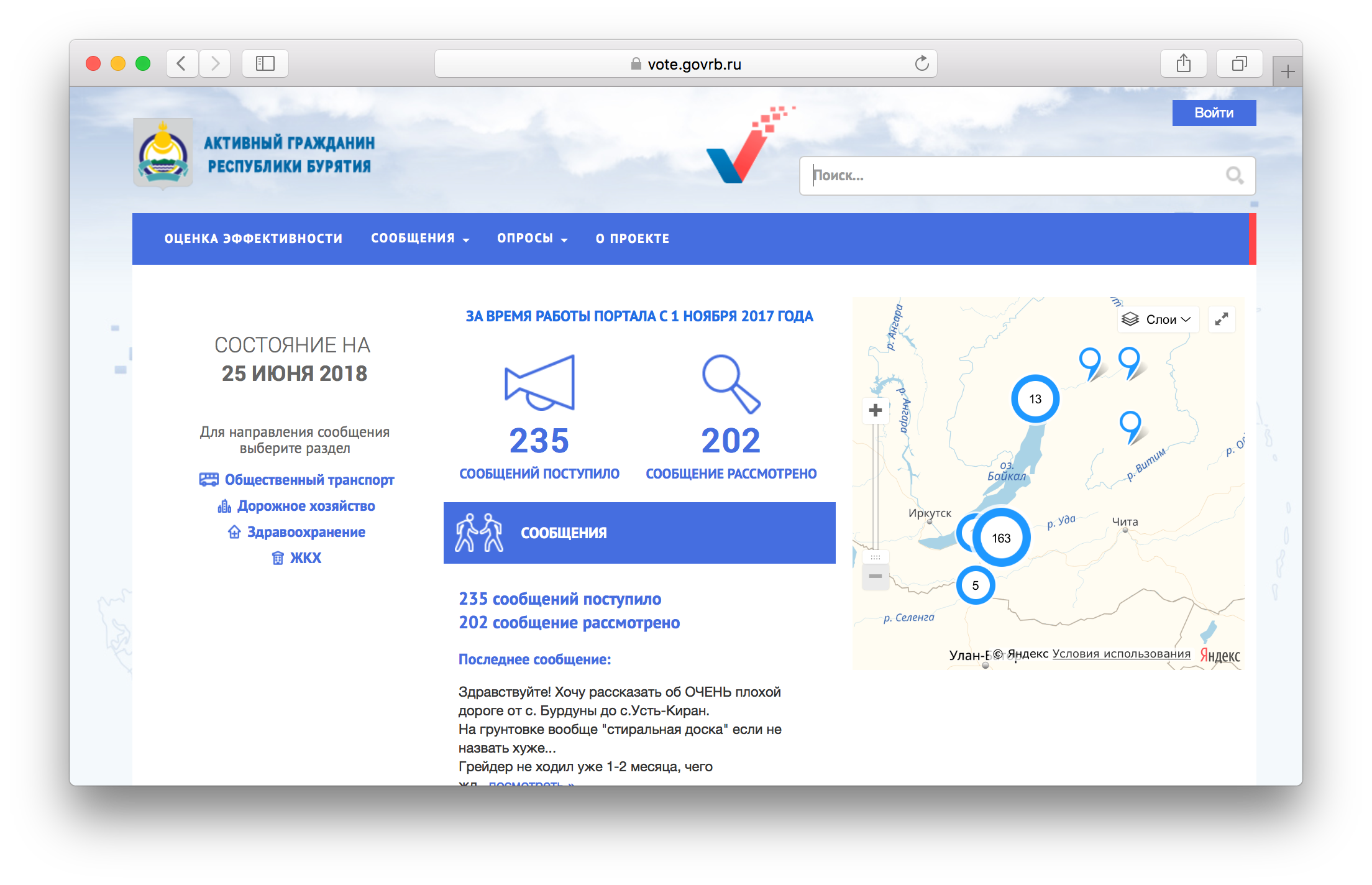 Вскоре после семинара сайты для электронных голосований и правда начали появляться в других регионах — особенно в тех, где недавно пришли к власти новые губернаторы. Впрочем, особым успехом эти проекты не пользовались. В конце 2017 года глава Бурятии Алексей Цыденов запустил сайт для жалоб и голосований; за следующие полгода жители региона, где живет почти миллион человек, оставили всего 234 жалобы и поучаствовали всего в двух опросах — о ремонте дорог в Улан-Удэ и о благоустройстве дворов. Мобильное приложение с аналогичным функционалом в Красноярском крае скачали всего сто человек; ни одного голосования там так и не прошло.